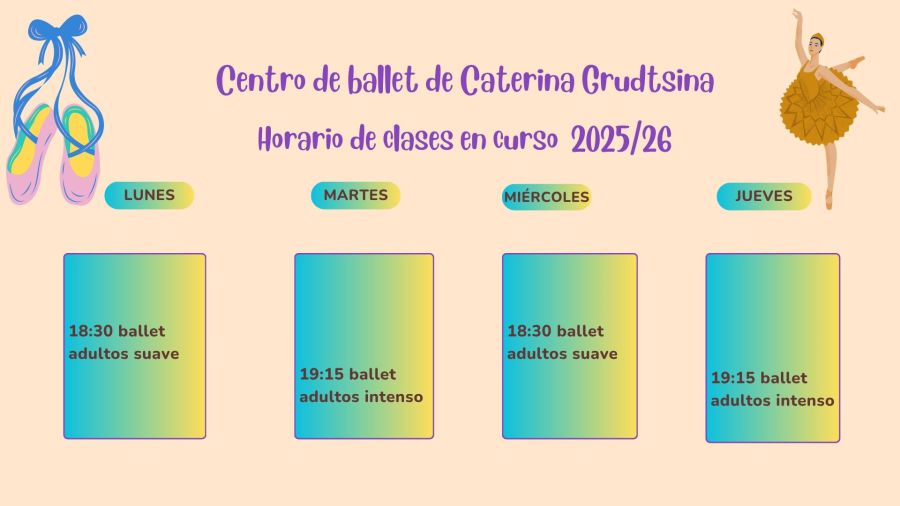 Hola a todos! Me llamo Caterina Grudtsina. Soy profesora de estas clases de ballet para adultos. A partir del año 2023 soy miembro de Consejo Internacional de Danza de UNESCO. Eso quiere decir, que los alumnos, que deseen y cumplan los requisitos, pueden recibir certificado de los estudios de ballet en nuestro centro. Este certificado es prestigioso y reconocido en todo el mundo y vendrá bien a cualquier curriculum.